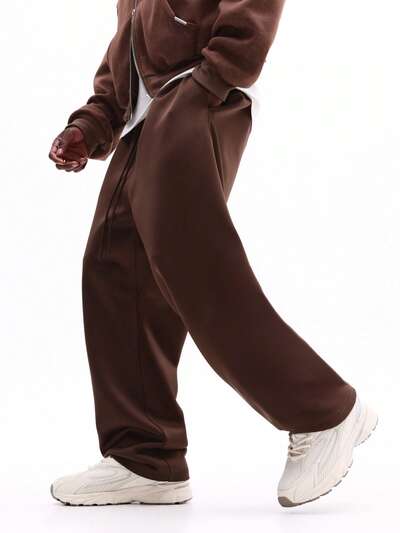 SUMWON Wide Leg Sweatpants With Pleats Relaxed Fit Lounge Pants Drawstring Waist Everyday Casual Wear Street Style Comfort Plain-40%