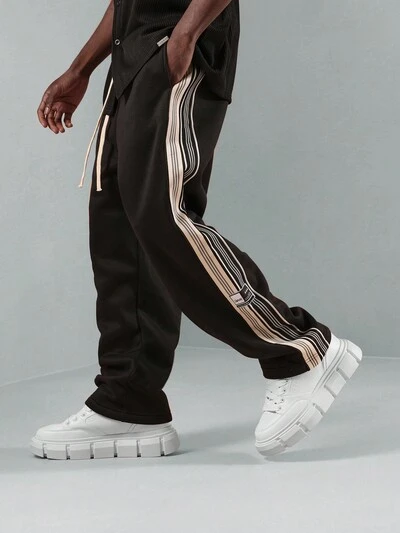 Drop Crotch Jogger Sweatpants With Side Stripe-35%