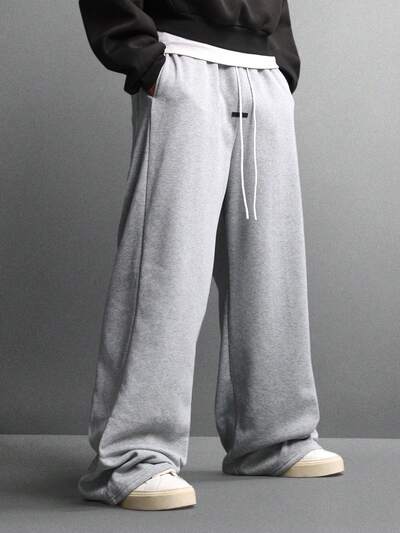 Wide Leg Fleece Sweatpants With Elastic Waistband-50%