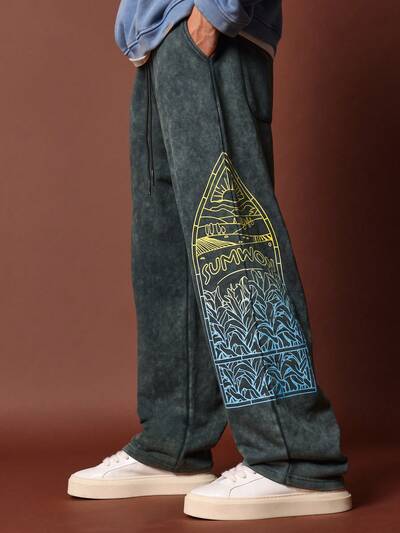 Retro Art Mountain Graphic Sweatpants-50%