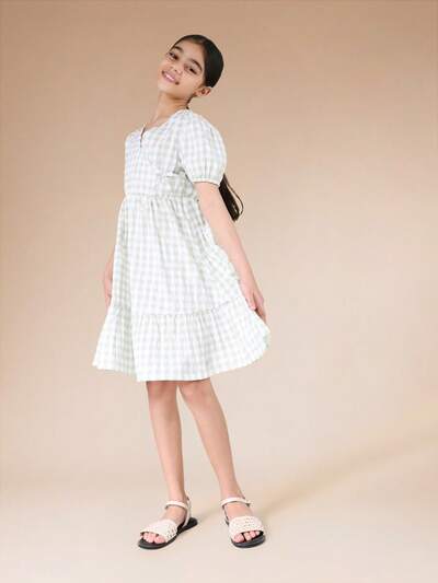 Gingham Tiered Midi Dress With Puff SleevesTiered Textured Long Sleeve Mini Dress