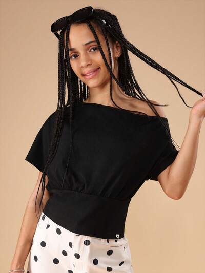 Bluzka z odkrytymi ramionami i marszczeniami w talii