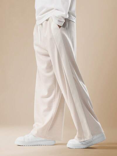 Spodnie dresowe z szerokimi nogawkami i kontrastowymi paskami po bokach-35%
