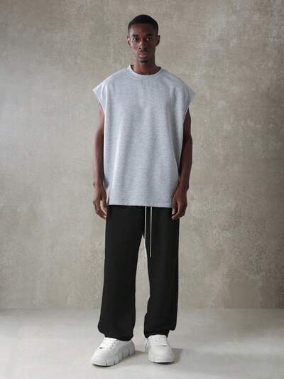 Męski oversize'owy top i spodenki do kolan, zestaw na co dzień, letni strój domowy, pasujący strój, okrągły dekolt, bez rękawów, odzież uliczna
