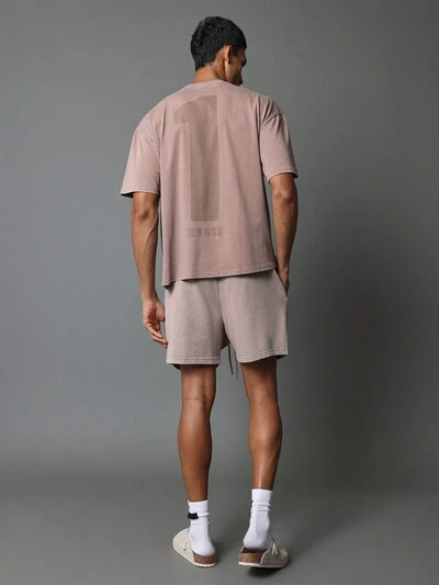 Dwuczęściowy komplet z krótkim rękawem i krótkim rękawem Regular Fit Washed Tee i krótkimi spodenkami z nadrukiem graficznym z numerem-45%