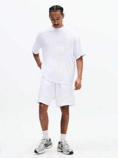 Biały komplet składający się z koszulki z okrągłym dekoltem i spodenek