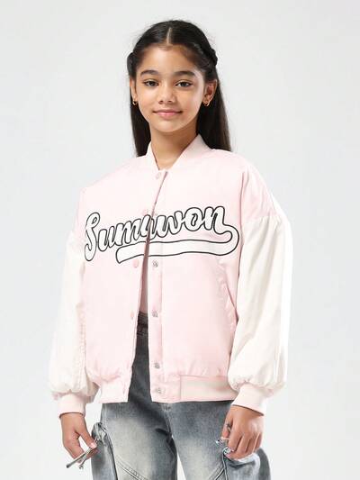 Różowa kurtka typu bomber z białymi rękawami i logo-20%