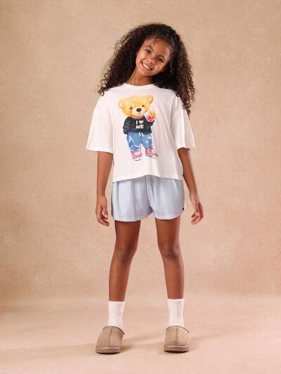 Komplet piżamowy z nadrukiem Misia Teddy Bear i szortami w paski-40%