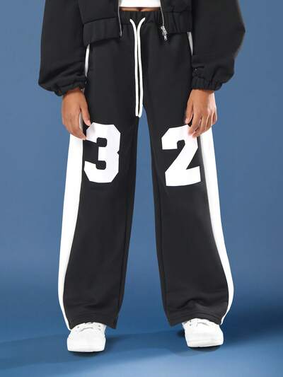 Spodnie dresowe z szerokimi nogawkami i grafiką liczbową-50%