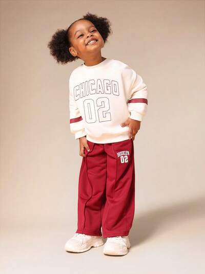 Dwuczęściowy zestaw dla dziewcząt z obszernym, krótkim topem i szerokimi spodniami z nadrukiem z boku, swobodny strój na wiosnę i lato