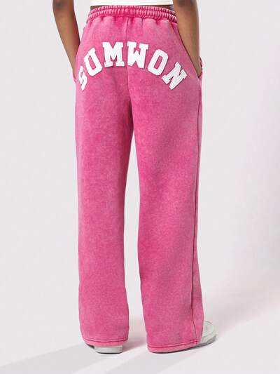 Spodnie dresowe z szerokimi nogawkami i nadrukiem "Love Me" w kształcie serca