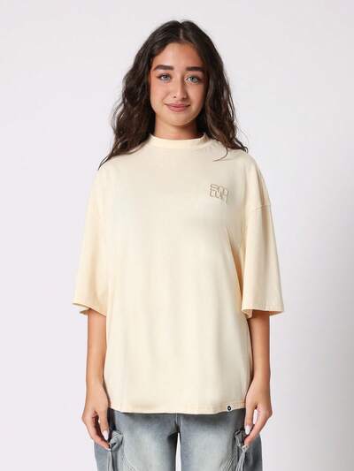 Luźna, pudełkowa koszulka z haftowanym logo w tonalnym kolorze-35%