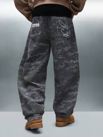 PLAYBOY X SUMWON Spodnie z szerokimi nogawkami i nadrukiem kamuflażowym z logo