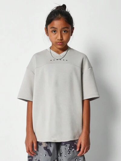Dwuczęściowy zestaw dla dziewcząt z luźnym krojem T-shirt i krótkimi spodenkami z obniżonym krokiem i haftowanym nadrukiem-50%