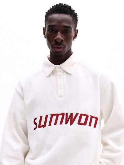 PLAYBOY X SUMWON Męska koszulka polo z długim rękawem, w stylu piłkarskim, o kroju boxy, z białym kołnierzykiem i haftowanym logo, na co dzień, na weekend