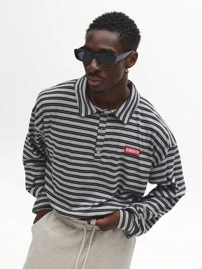Pasiasta koszulka polo do rugby o pudełkowym kroju