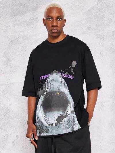 Obszerna koszulka z grafiką rekina