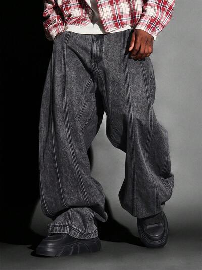Jeansy z szerokimi nogawkami i panelami oraz kontrastowymi przeszyciami