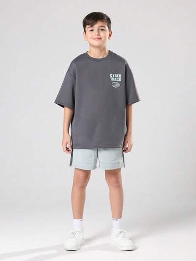 Chłopięcy swobodny T-shirt i spodenki w dopasowanym komplecie z nadrukiem liczbowym, letni, codzienny, wygodny strój-50%