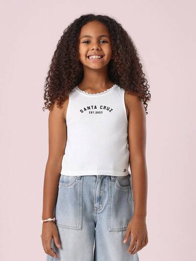 Top na ramiączkach dla dziewczynek w wieku nastoletnim z koronkowym wykończeniem i prążkowanym wykończeniem-50%