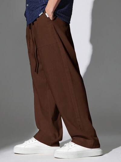 Spodnie płócienne z szerokimi nogawkami i kieszenią na telefon-10%
