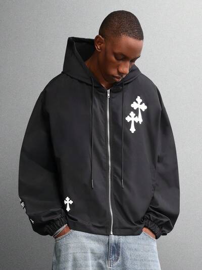 Oversize'owa kurtka wiatrówka z nadrukiem krzyżowym-50%