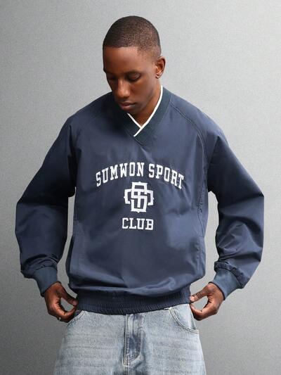 Bluza z dekoltem w serek, ściągaczem i nadrukowanym logo klubu-50%
