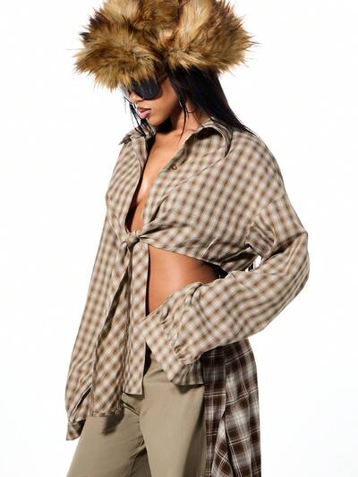 SUMWON WOMEN Camisa cropped xadrez oversized com nó
