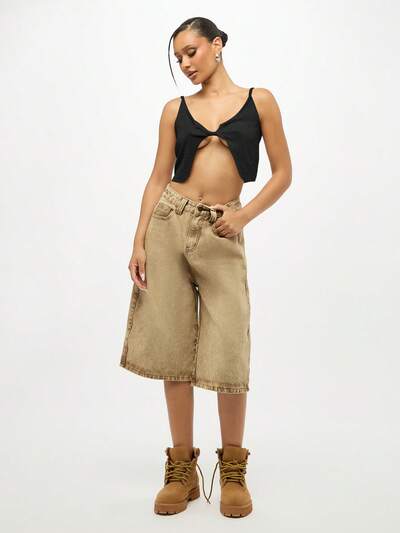SUMWON WOMEN Regata Cropped com Detalhe de Fivela, Decote Quadrado, Alças e Cinto Estilo Espartilho na Cintura