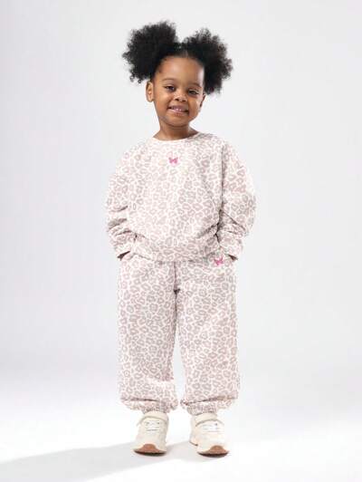 Moletom com estampa de leopardo e calça jogger com detalhe de borboleta