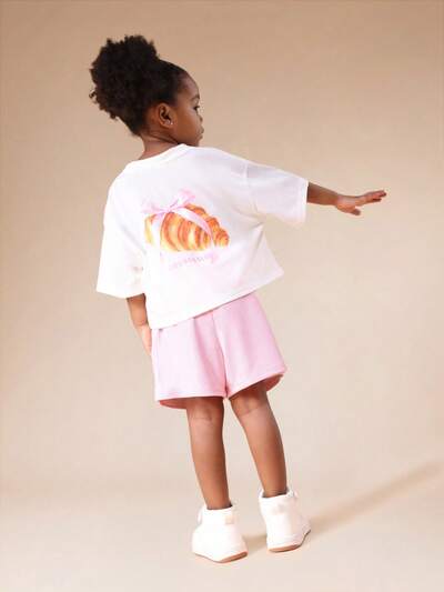 Conjunto Coordenado Feminino de Manga Curta com Gráficos, Shorts Rosa Oversized, Casual de Verão