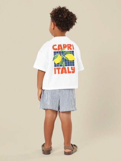 Conjunto de camiseta com tema de férias italianas e shorts listrados-5%