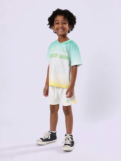 Conjunto Coordenado de Camiseta de Manga Curta com Gola Careca e Shorts de Cintura Elástica para Meninos no Verão
