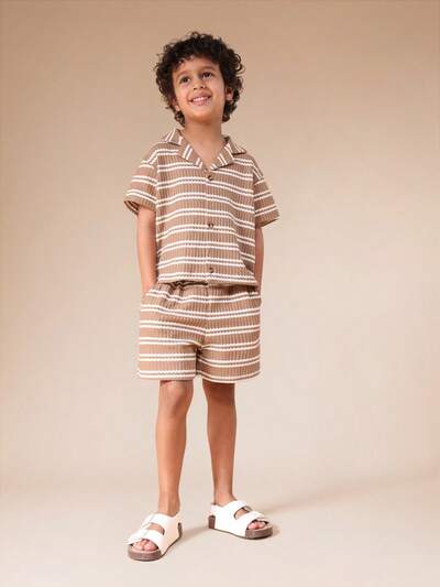 Conjunto Casual de Verão para Meninos, Camiseta Listrada de Ajuste Relaxado e Shorts Combinando, Conforto Casual