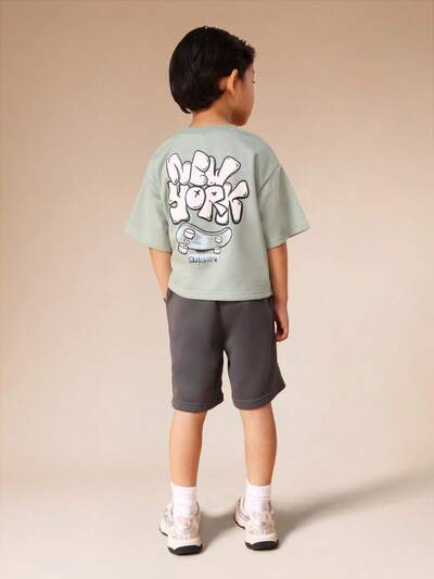 Conjunto de camiseta de manga curta e shorts com estampa de skate
