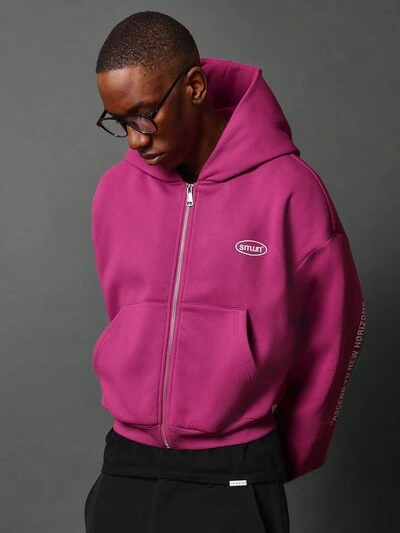 Moletom com capuz cropped e zíper com estampa estética essencial-10%