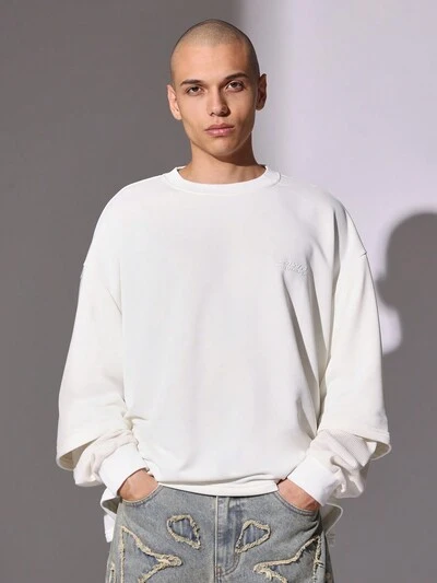 Moletom oversized de gola redonda French Terry com mangas em camadas-25%