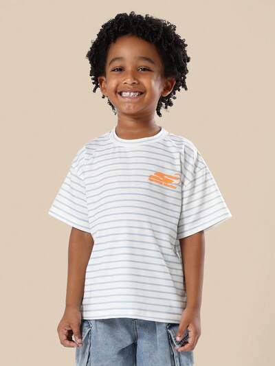 Camiseta listrada oversized com estampa de logotipoConjunto de camisa com botões e shorts com cordão, com toque de linho.