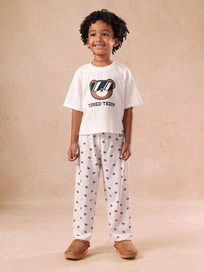 Camiseta com estampa de ursinho cansado e calça com estampa de urso combinando-10%