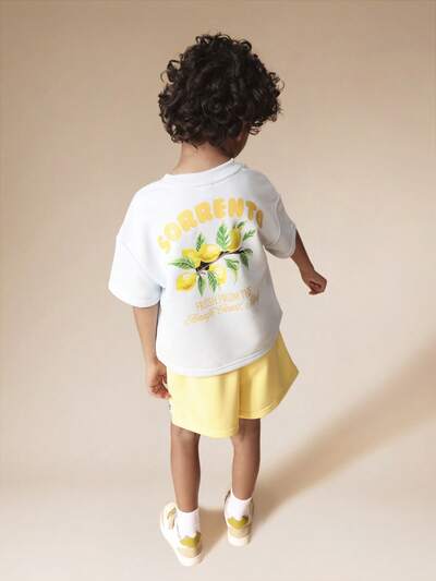 Conjunto de camiseta de gola redonda e shorts amarelos