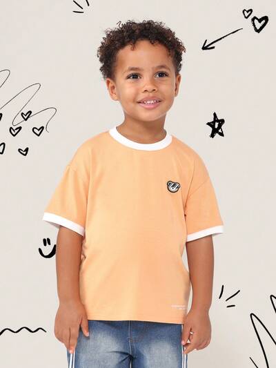 Calça de Cordão Listrada para Meninos com Remendo de Macaco, Cintura Elástica, Calça Casual do Dia a Dia, Barra Dobrada, Calça Jogger Confortável Estilo Infantil
