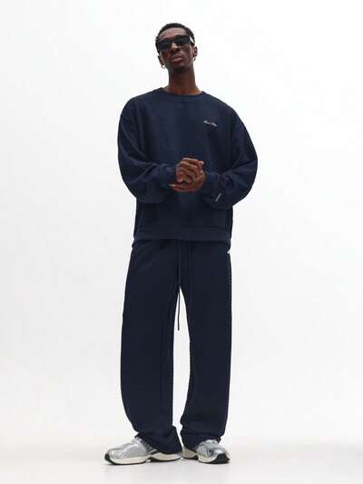 Conjunto de moletom texturizado acolchoado e calça jogger com cordão