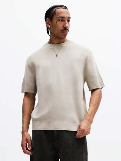 Suéter com gola redonda caneladaPolo de malha vazada com modelagem relaxada