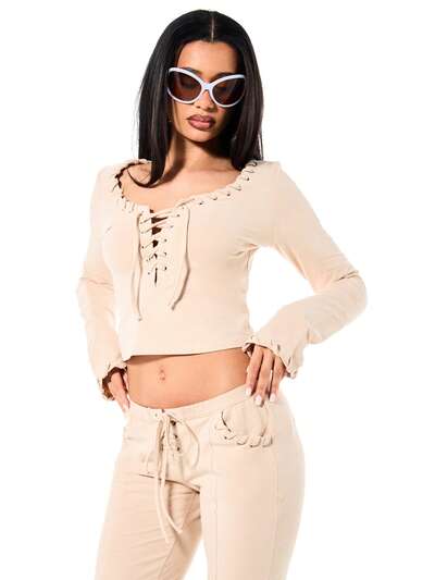 SUMWON WOMEN Top cropped canelado de manga comprida com costuras contrastantes.-20%
