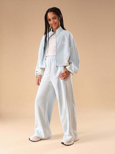 Moletom curto com capuz e zíper e calça jogger de perna larga com inscrição