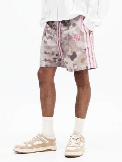 Shorts Esportivas Masculinas Pretas com Friso Branco em Contraste, Ajuste Regular, Cordão na Cintura, Estilo Casual de Verão, Shorts de Treinamento, Confortáveis, Cintura Elástica