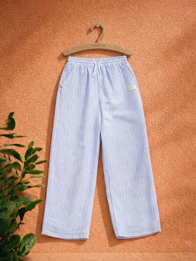 Calças listradas de perna reta com cintura elástica