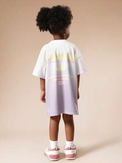 Vestido camiseta oversized com estampa degradê e efeito gráfico