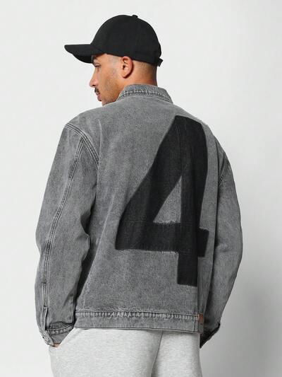 Jaqueta Denim trucker oversized desgastada com lavagem em pedra e número 4