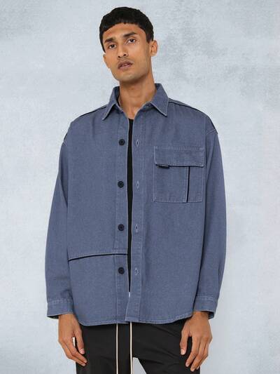 Camisa Denim utilitária oversized-50%